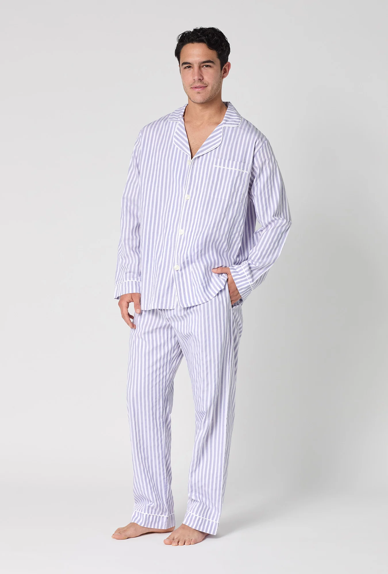 Blue 3D Stripe Men's Long Sleeve Classic Woven Cotton Sateen PJ Set